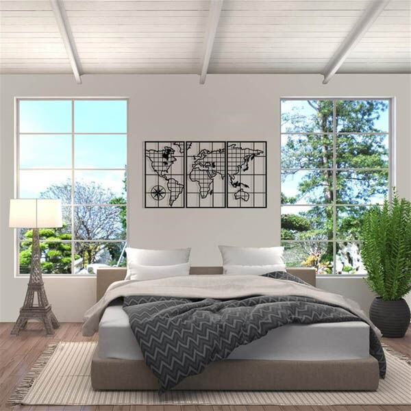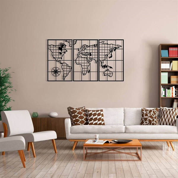 ÖZEL TASARIM 3'LÜ DÜNYA HARİTASI METAL DUVAR DEKORU,