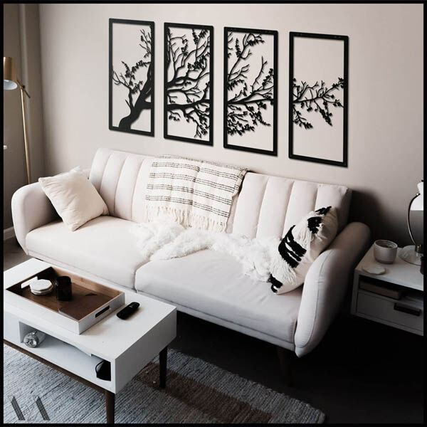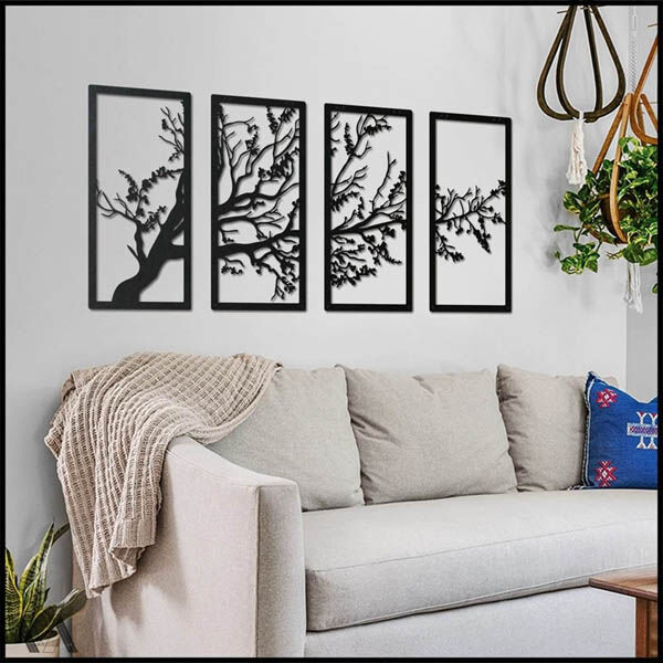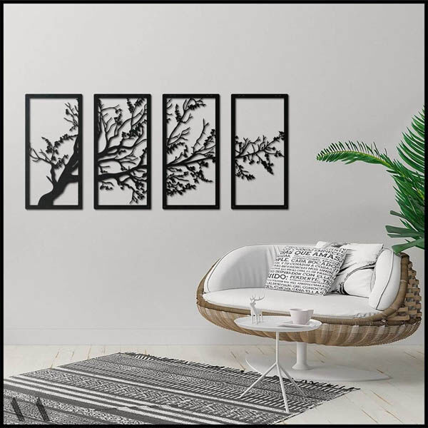 ÖZEL TASARIM 4'LÜ AĞAÇ METAL DUVAR DEKORU