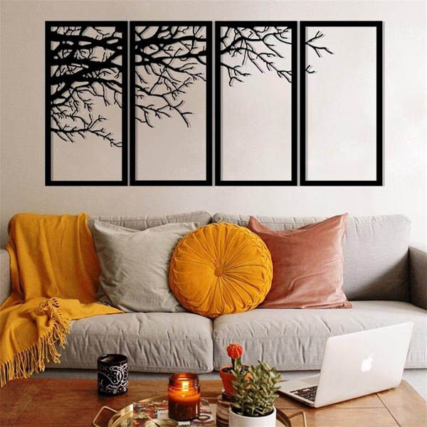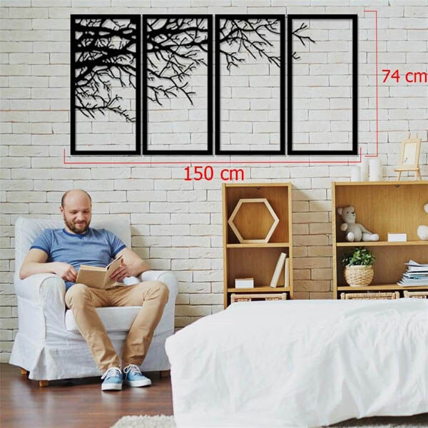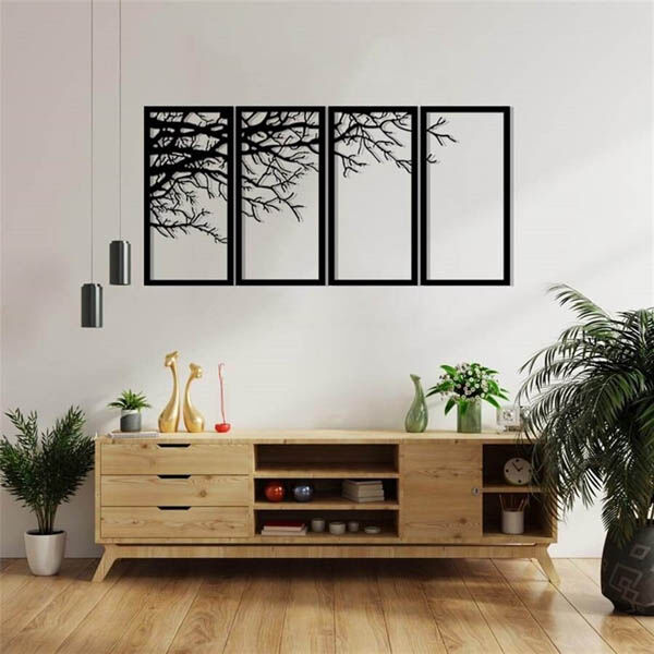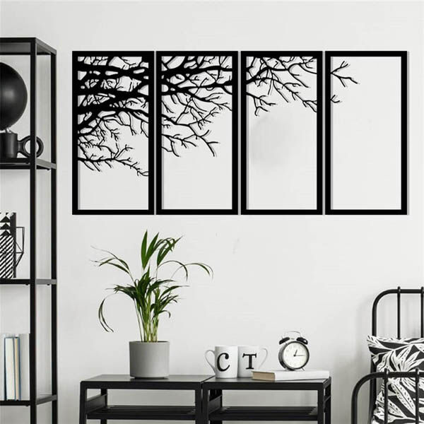 ÖZEL TASARIM 4'LÜ DAL METAL DUVAR DEKORU,