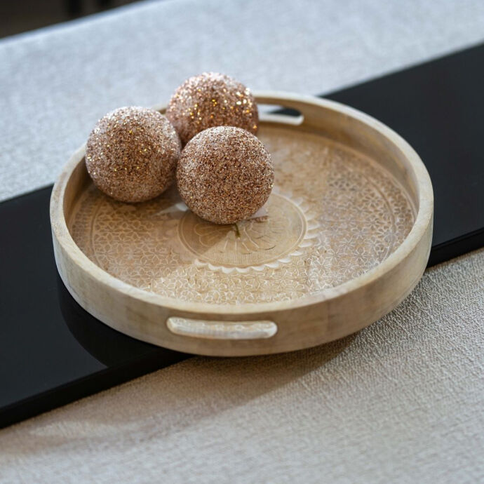 Baskılı Natural Yuvarlak Tepsi Büyük