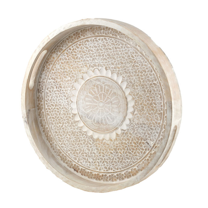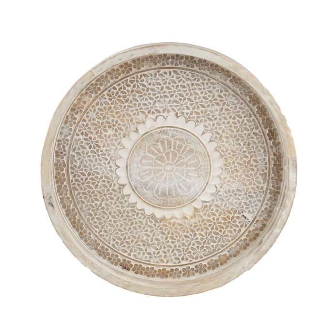 Baskılı Natural Yuvarlak Tepsi Küçük