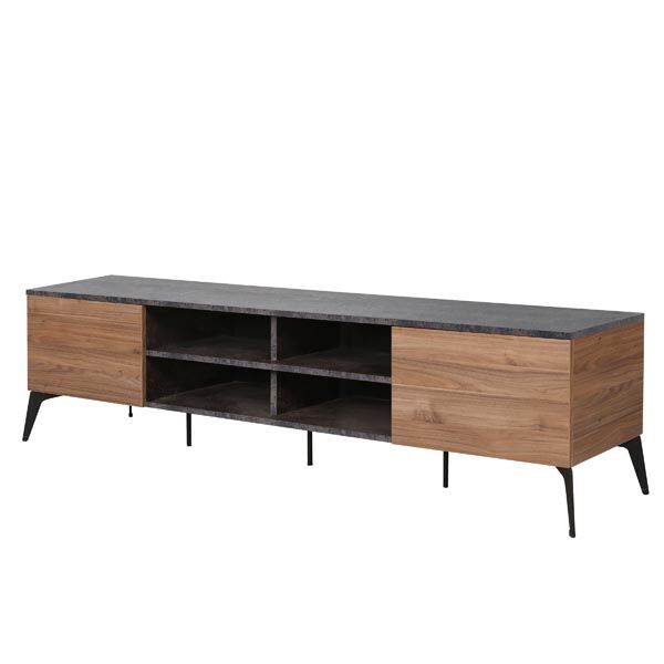 Carmen tv ünitesi iki kapaklı ve bir adet raflı bölüme sahiptir. Ayaklar mat siyah boyalı metaldir.