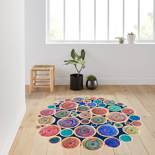Dij. Baskı Deri Yuvarlak Halı