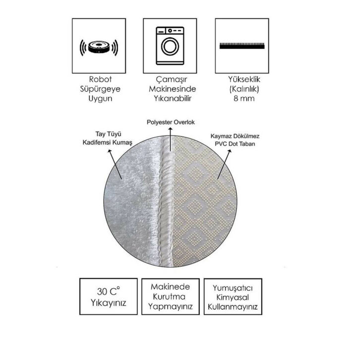 Toz Ve Leke Tutmaz. Halınızı esnek, katlanabilir yapısı sayesinde çamaşır makinesinde 30°C 'de ya da elde yıkayabilirsiniz.