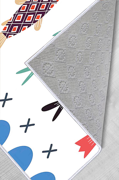 Leke tutmayan, tay tüyü kadifemsi halı kumaşına Dijital Baskılıdır. Kaymaz- dökülmez Dot tabandan üretilmiştir.