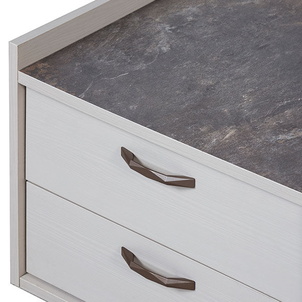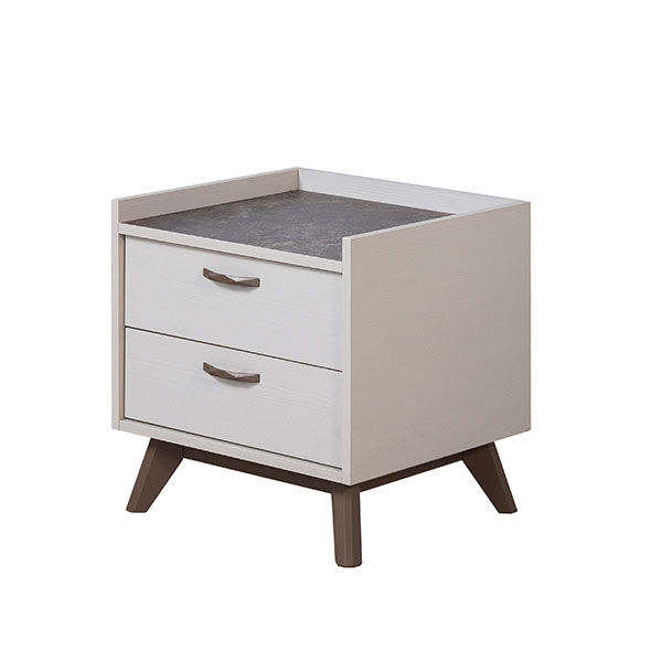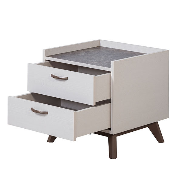 Komodin gövdesi yonga levha malzemedir. Ayak ve kayıtlar kayın masiftir.