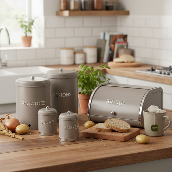 Galvaniz Metal Gri Tea Saklama Kutusu
