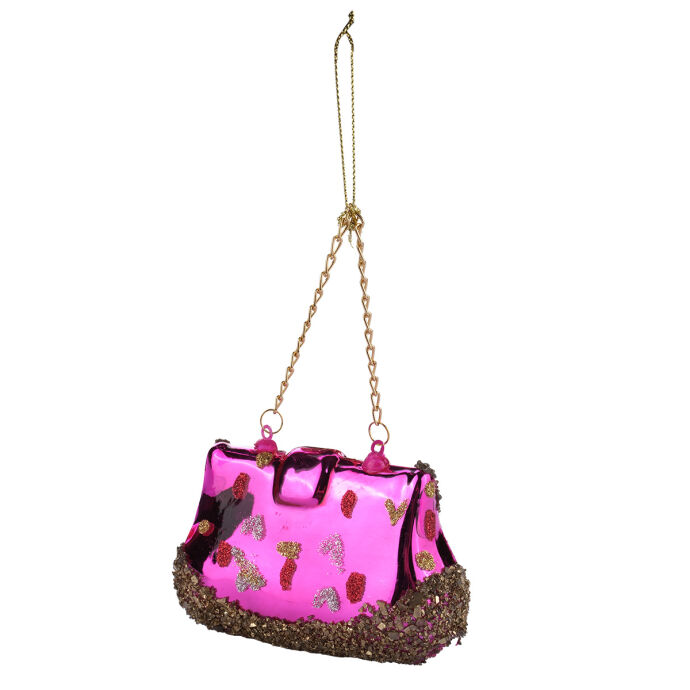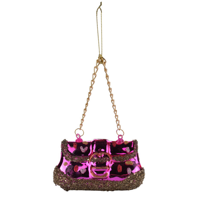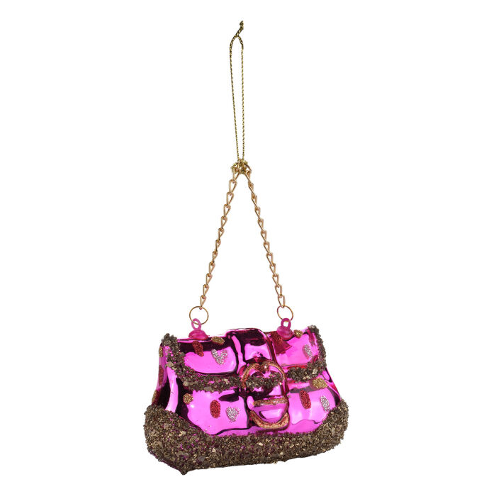 Gold Taşlı Fuşya Çanta Ağaç Süsü