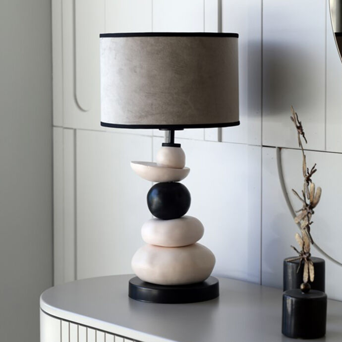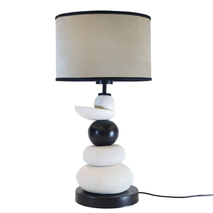 Metal alt tabla üzerine seramik taşlı, kadife şapkalı abajur.