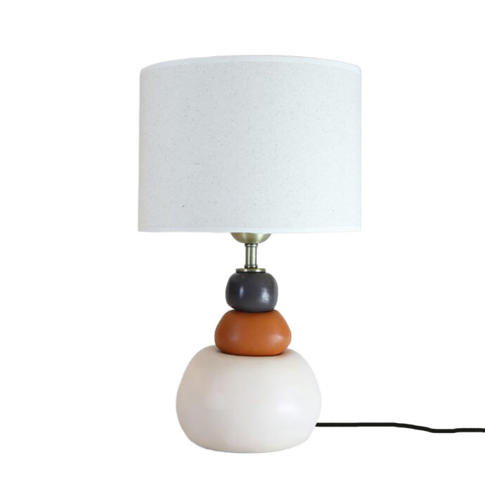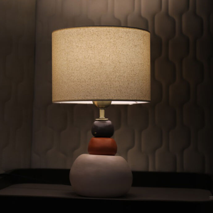 Seramik taşlı, keten şapkalı abajur