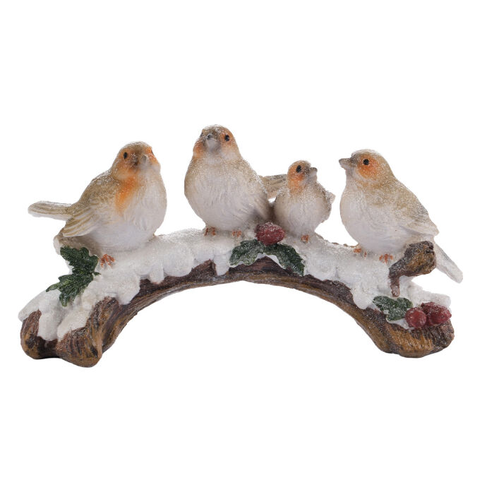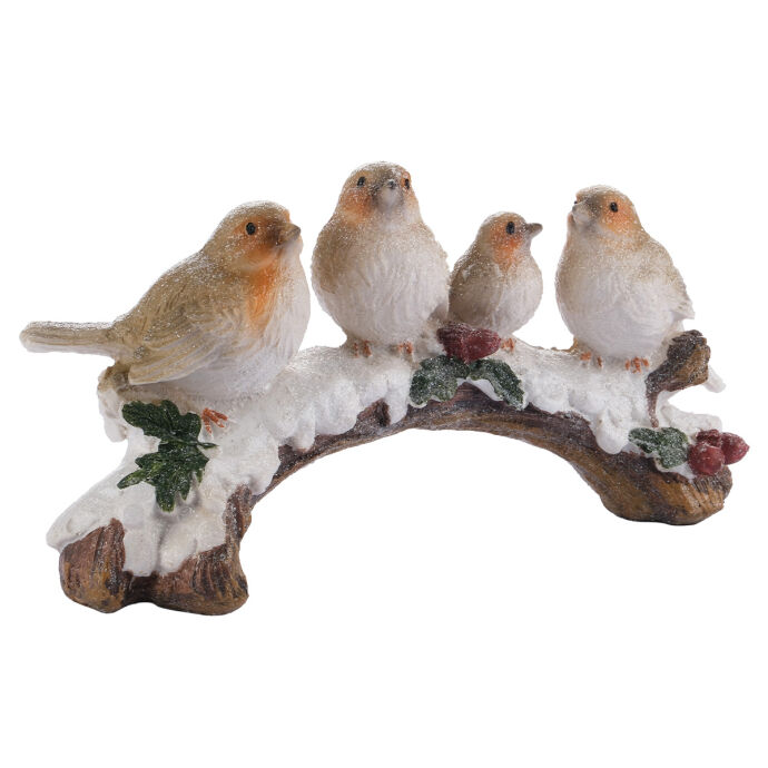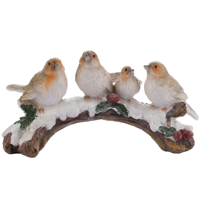 Karlı Dalda Oturan Kuşlar Dekoratif Obje