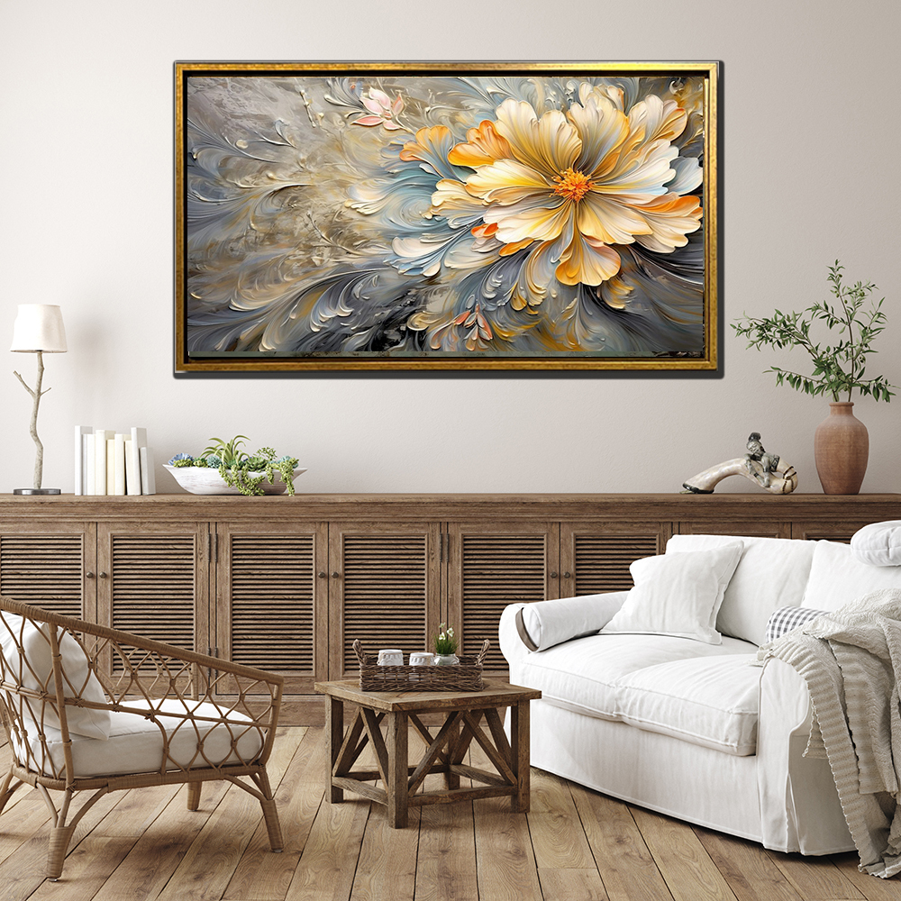Ürün Ölçüleri : 75x145 Çerçeveli kabartmalı tablo modellerimizde, resme göre, resim üzerinde doku, kabartma altın veya gümüş varak, sim ve sanatsal uygulamalar mevcuttur. Resmin etrafında model rengine göre eskitme gold, gümüş veya siyah renk L çerçeve bulunmaktadır. Çerçeve kalınlığı 3x4 cm’ dir. %100 pamuk kumaş ve 1.sınıf fırınlanmış ahşap şaseler kullanılmıştır. Ürünler ömür boyu iç mekanda aynı kalitede kullanılabilmektedir. Ürünler duvara asmaya hazır halde gönderilmektedir. Ürünlerimiz muhafazalı kutusunda kırılmaya karşı garantili olarak gönderilmektedir.