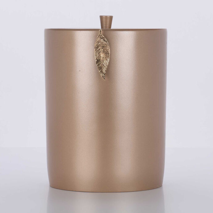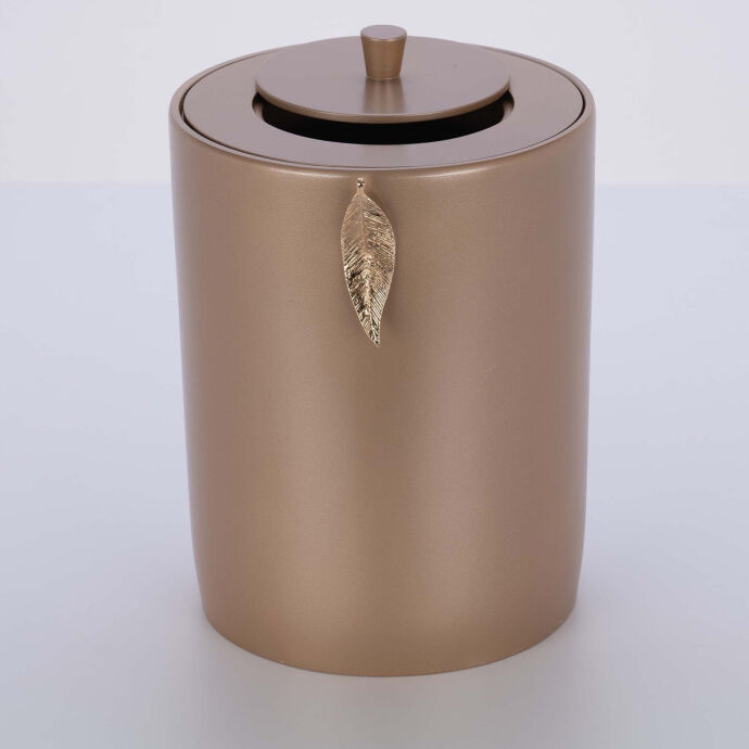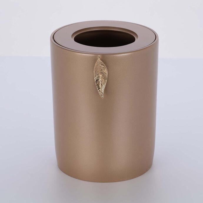 Leaf çöp kovası, parlak vizon zeminde metalik yaprak ile banyonuzda sade ve elit görünümü tamamlar.