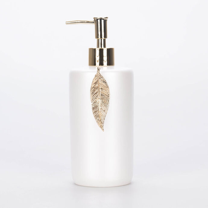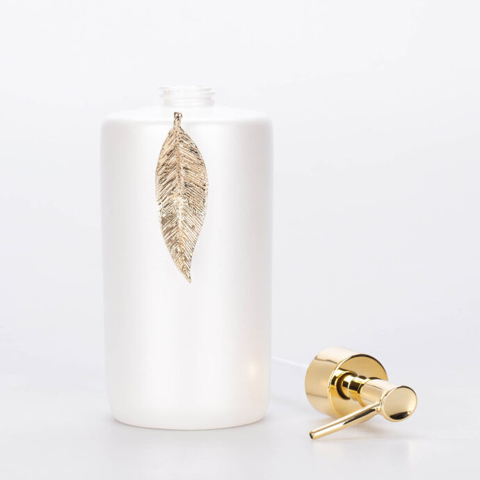 Kusursuz minimal bir zeminde metalik yaprak figürü ile tamamlanan Leaf sıvı sabunluk, lavabonuz için hijyenik, pratik ve lüks görünümlü bir aksesuardır.