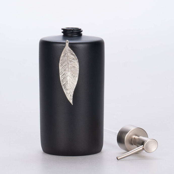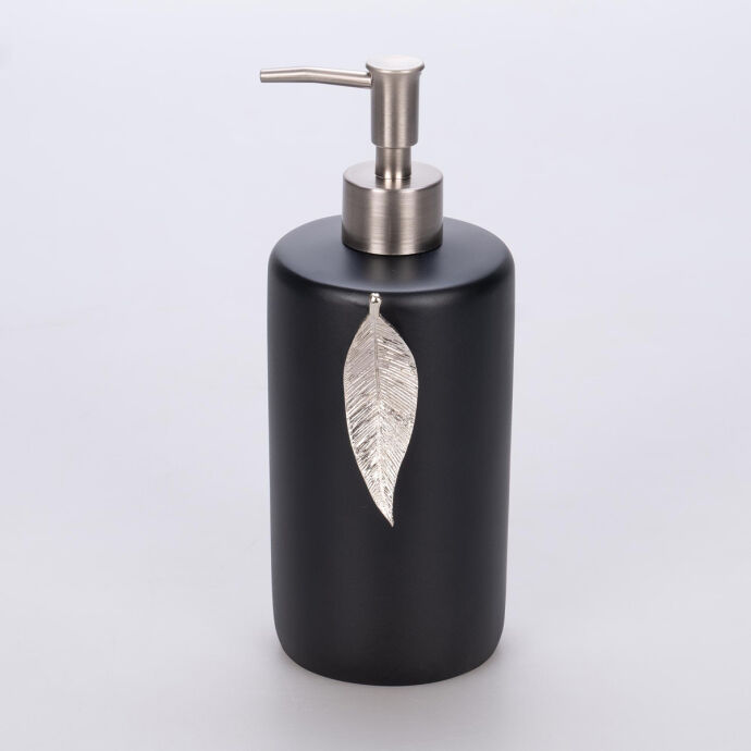 Leaf Sıvı Sabunluk Siyah Gümüş