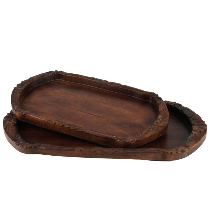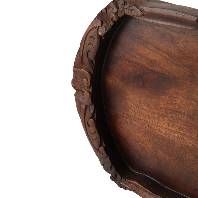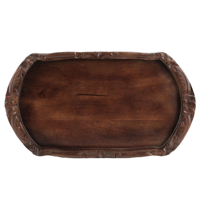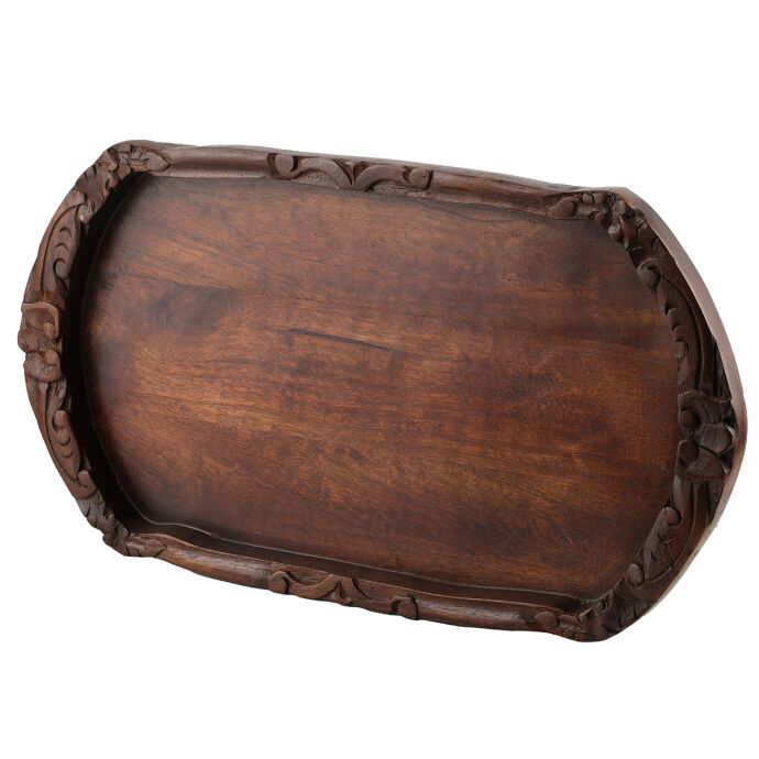 Natural Koyu Ceviz Oymalı Tepsi Küçük
