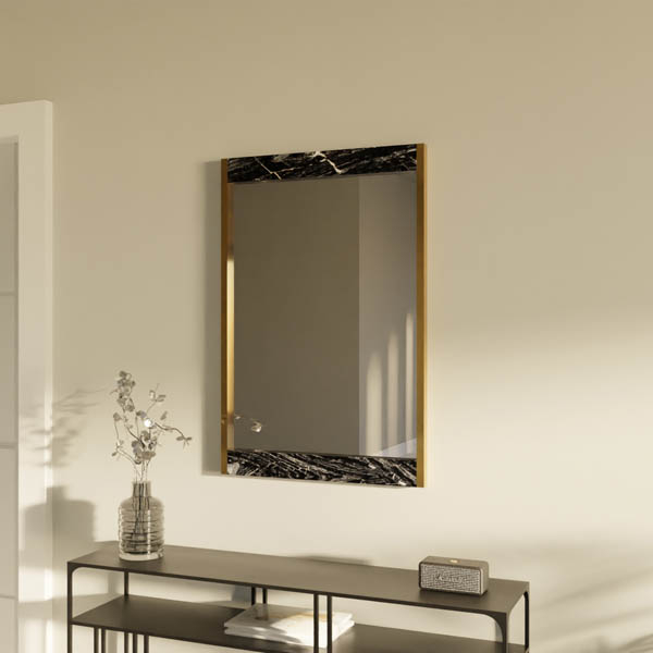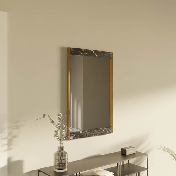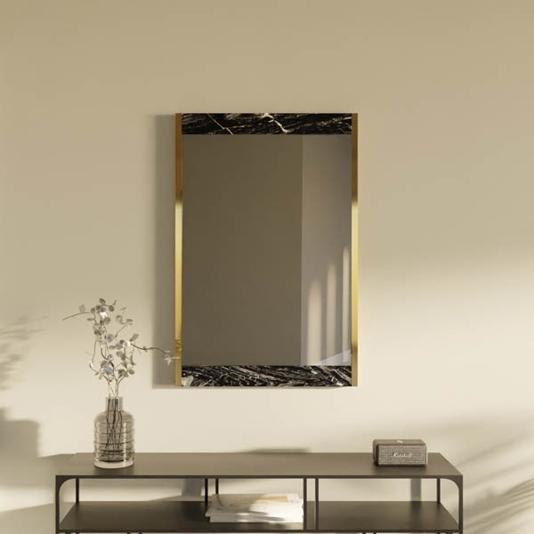- Malzeme: Metal profil, doğal mermer ve şişecam ayna