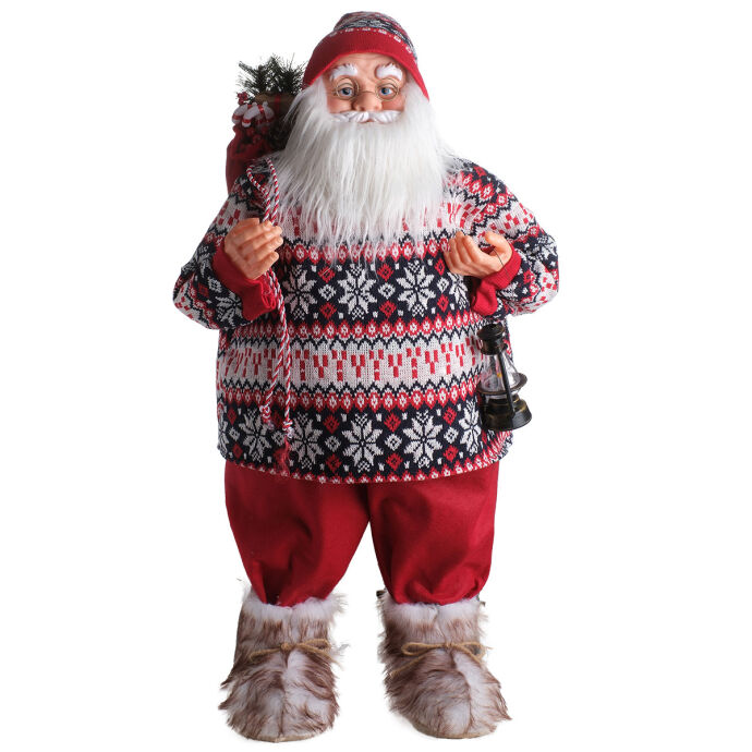 Noel Baba Ayakta Fener Çantalı 80 Cm