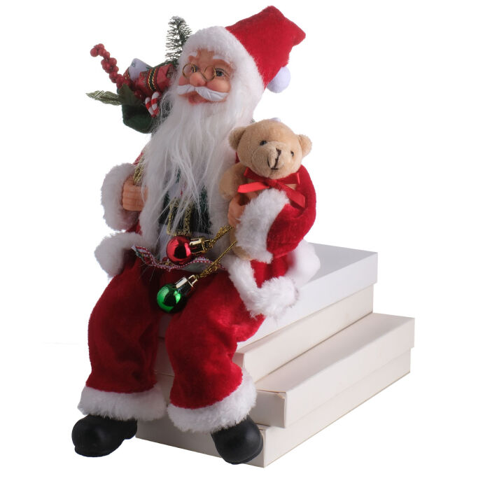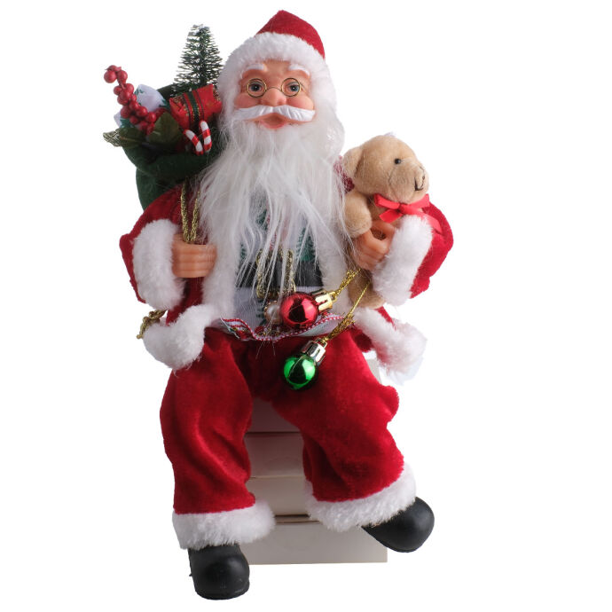 Noel Baba Oturan Hediye Çantalı 30Cm