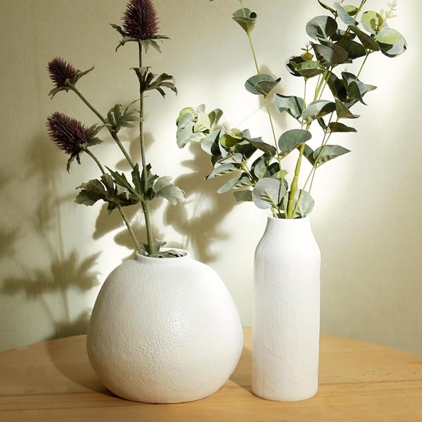 Hem modern hem zamansız bu vazoyu sofranızda kuru organik bir çiçek aranjmanı ile ya da dresuar üzerinde özenle sergileyin.