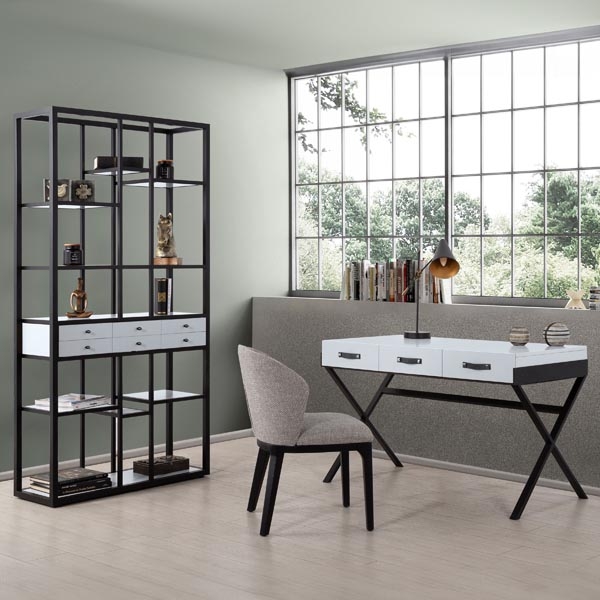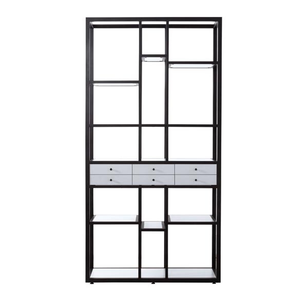 Orenda kitaplığın strüktürünün tamamı siyah elektrostatik boyalı metal profilden oluşmaktadır.