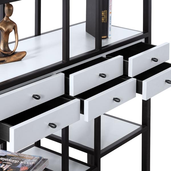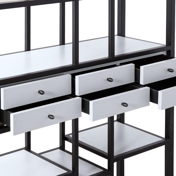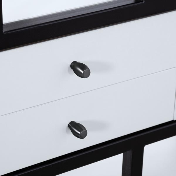 Çekmece içleri 8 mm siyah yonga levha malzemedir. Çekmecelerde siyah metal düğme kulp kullanılmıştır.
