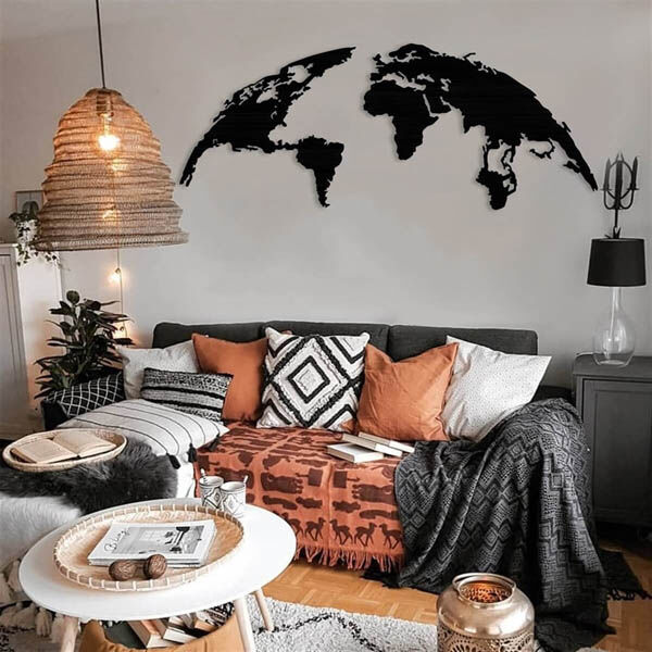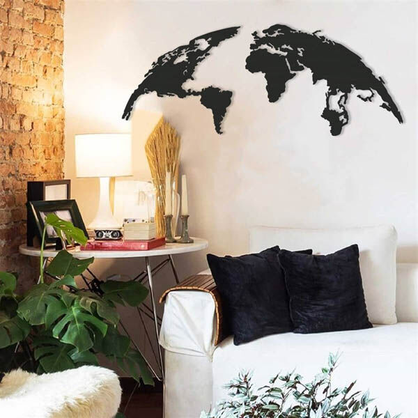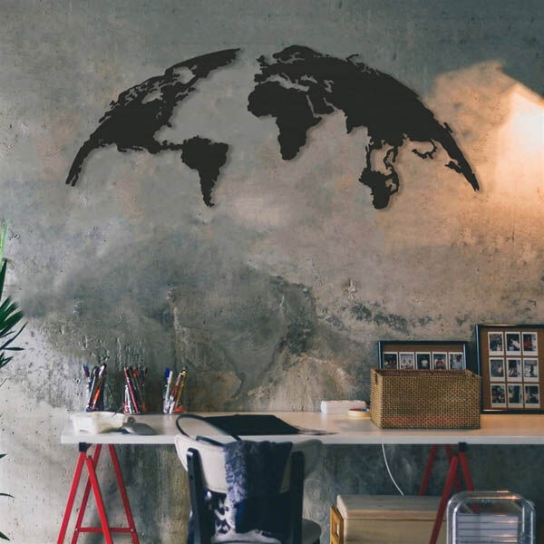 ÖZEL TASARIM OVAL DÜNYA HARİTASI METAL DUVAR DEKORU,