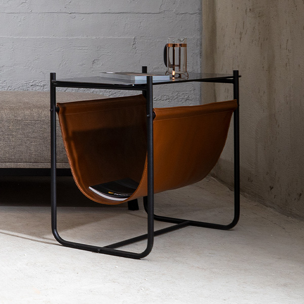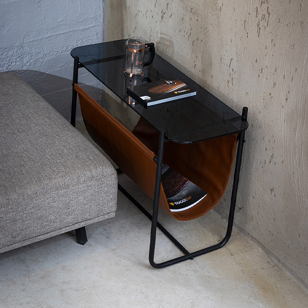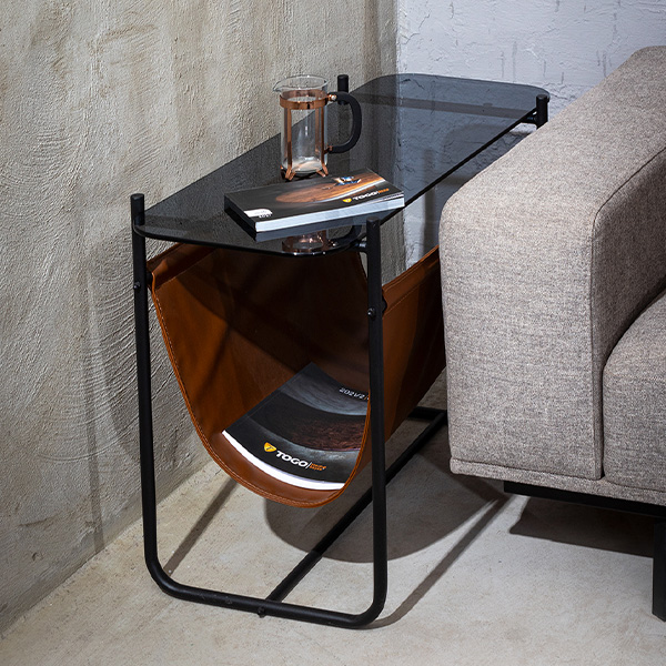 Malzeme: Gövde Siyah metal üst tabla füme cam-alt taba rengi deri.