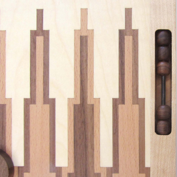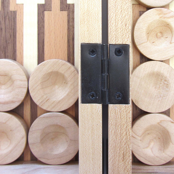 İç yüzey oyun alanı akçaağaç kaplama, pullar ceviz ve kiraz masif ahşap, sayı boncukları ceviz masif ahşap, tavla kilit aksesuarı siyah metal ile üretilmiştir.