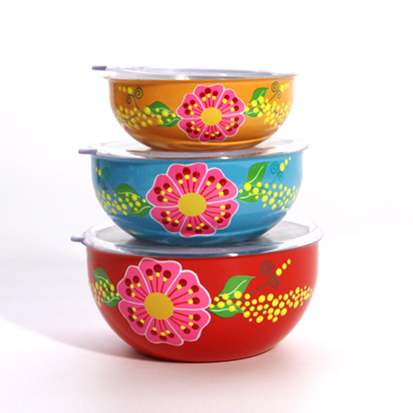 304 paslanamaz çelik üzeri el boyama 14-16-18 cm saklama kabı