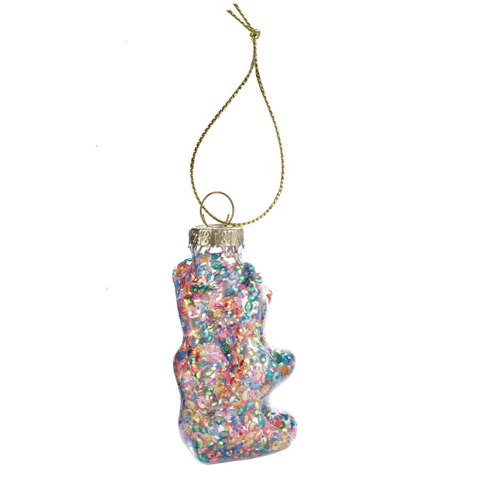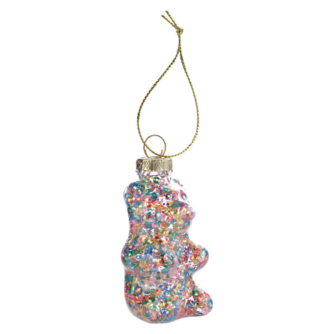 Simli Mavi Ayıcık Cam Ağaç Süsü