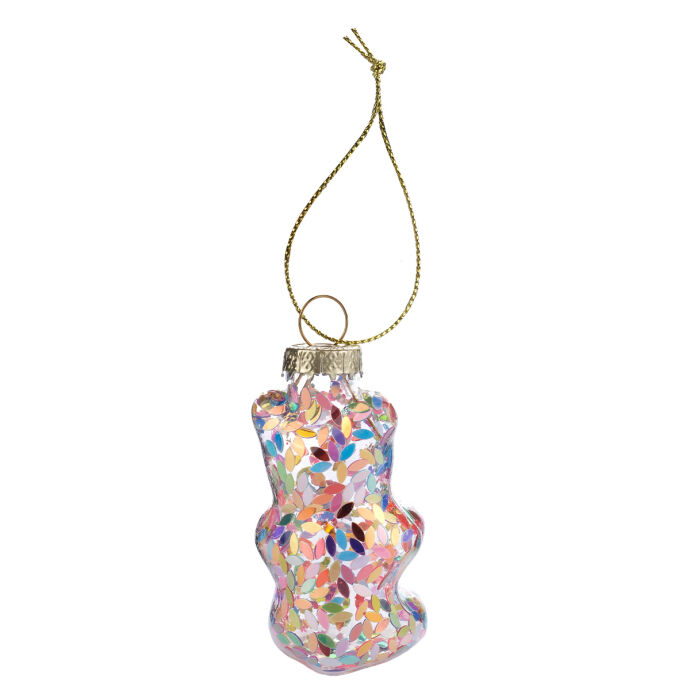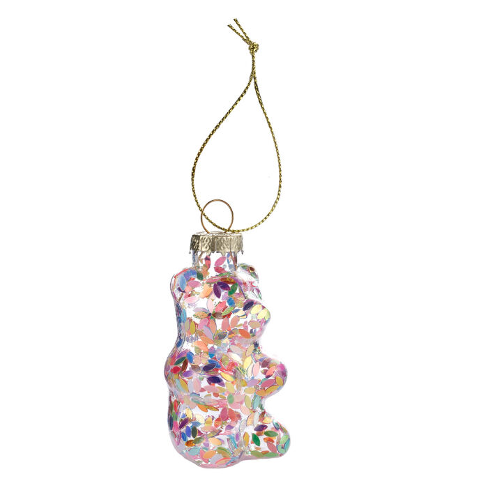 Simli Yeşil Ayıcık Cam Ağaç Süsü