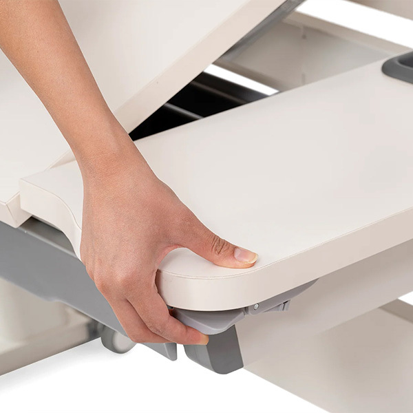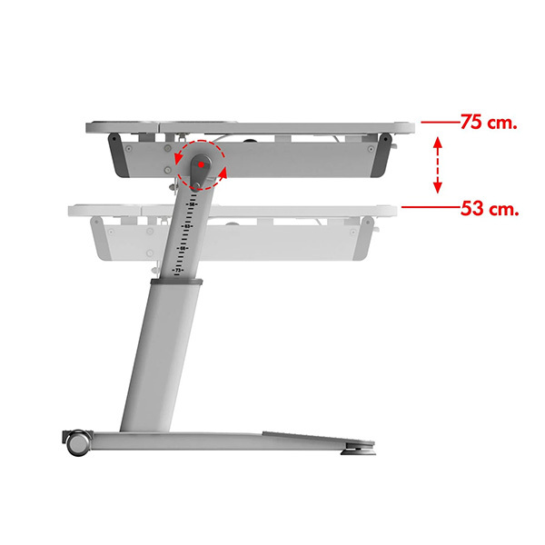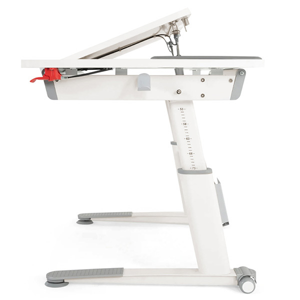 Bir el ile piston düğmesine basılarak diğer el ile masa üst tablası kontrollü bir şekilde 25 derece eğime kadar istenilen ölçüde ayarlanabilir