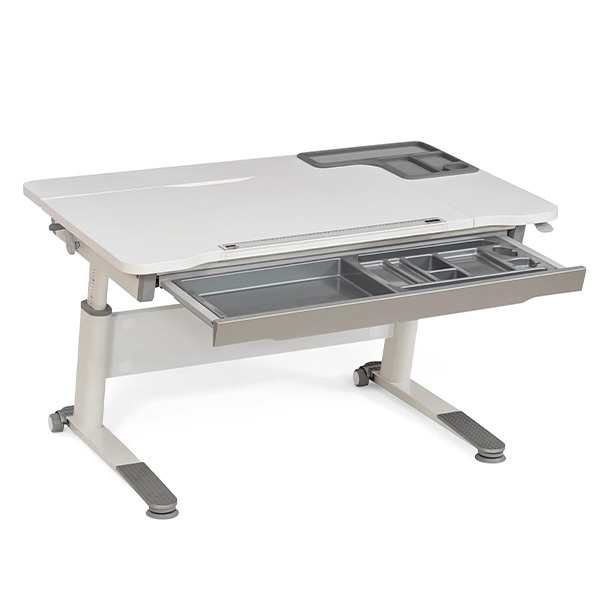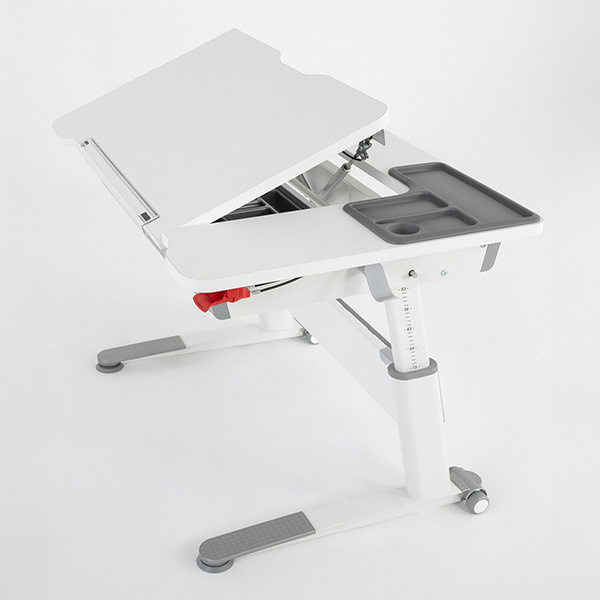 Sirius Yükseklik Ayarlı Çalışma Masası, çocukluktan yetişkinliğe kadar uzanan geniş yaş aralığında kullanıma uygun bir tasarım sunar. Piston mekanizması sayesinde masa üstü 0-25 derece eğim verilebilir, böylece farklı çalışma gereksinimlere cevap verir. Sağ ve sol tarafa takılabilen çevirme kolu ile çocuğunuzun boyuna uygun bir masa yüksekliği ayarlanabilir. Yüksekliği ayarlanabilir masa ayakları ve pratik çanta kancası gibi özellikler işlevselliği arttırır. Eğimli masa üst tablası, cetvel, masa düzenleyici plastik tepsi gibi aksesuarlar çalışma alanını düzenler.