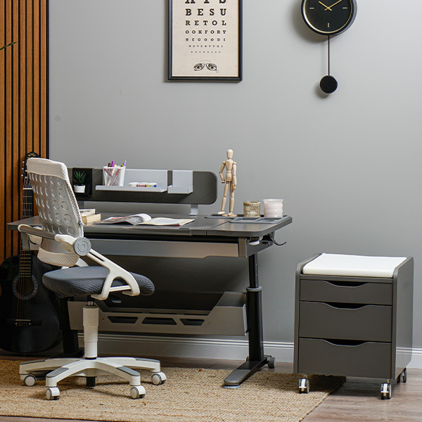 AYARLANABİLİR MASA+ÇEKMECE+OPSİYON PANO+KABLO KANALI+SANDALYE+KESON MİNDERLİ RENK:ANTRASİT-GRİ
