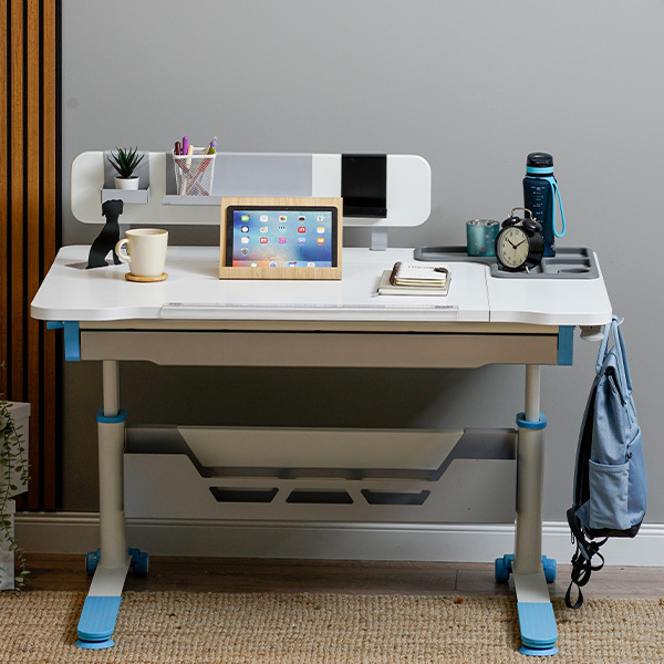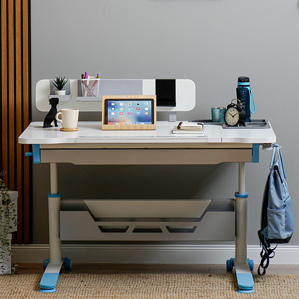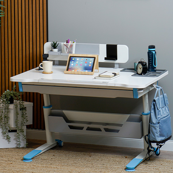 Sirius Yükseklik Ayarlı Çalışma Masası, çocukluktan yetişkinliğe kadar uzanan geniş yaş aralığında kullanıma uygun bir tasarım sunar. Piston mekanizması sayesinde masa üstü 0-25 derece eğim verilebilir, böylece farklı çalışma gereksinimlere cevap verir. Sağ ve sol tarafa takılabilen çevirme kolu ile çocuğunuzun boyuna uygun bir masa yüksekliği ayarlanabilir. Yüksekliği ayarlanabilir masa ayakları ve pratik çanta kancası gibi özellikler işlevselliği arttırır. Eğimli masa üst tablası, cetvel, masa düzenleyici plastik tepsi gibi aksesuarlar çalışma alanını düzenler.