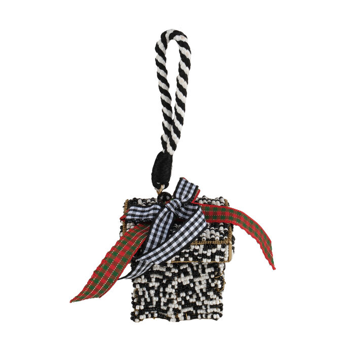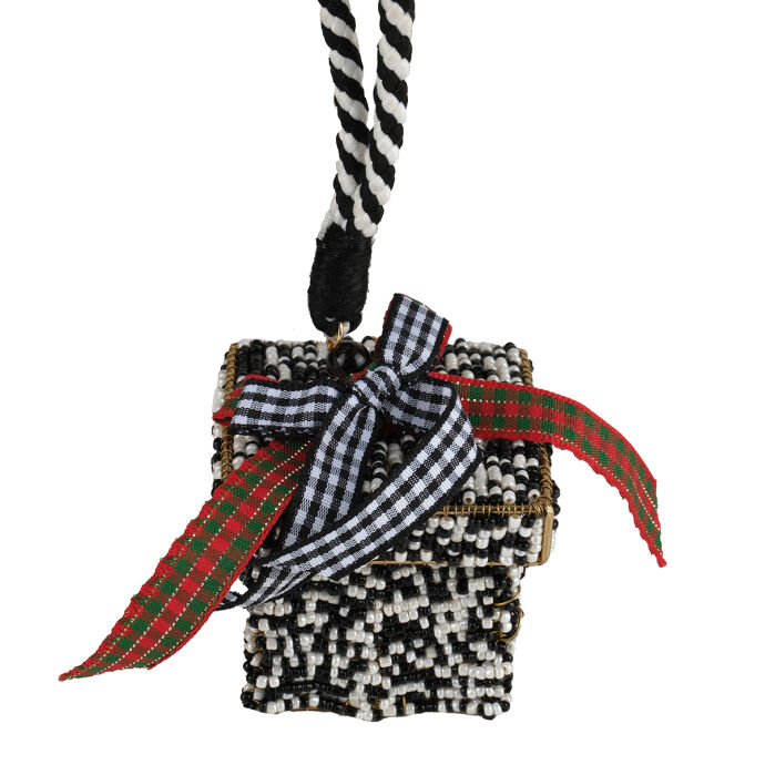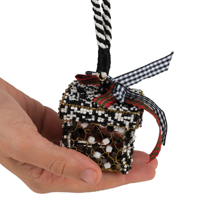 Siyah Beyaz Ekose Hediye Kutu Ağaç Süsü
