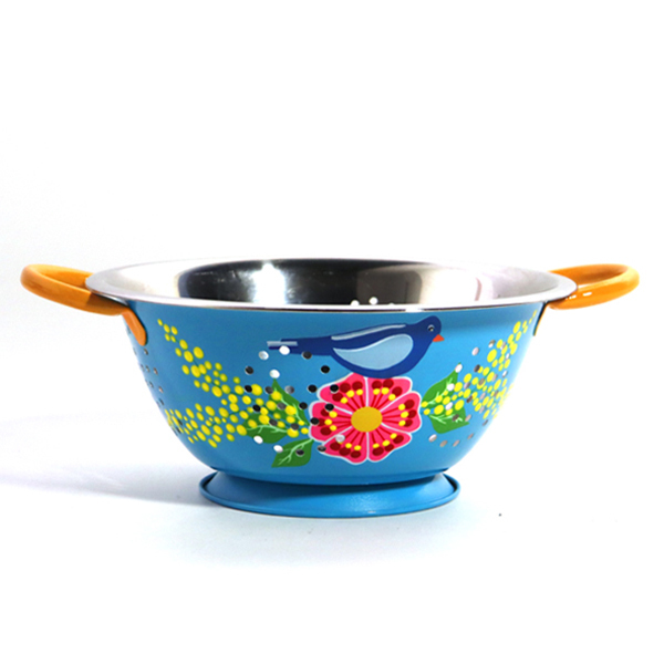 430 paslanmaz çelik üzeri el boyama 24 cm süzgeç