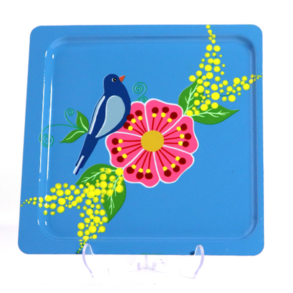 304 paslanamaz çelik üzeri el boyama 20x20 kare tepsi