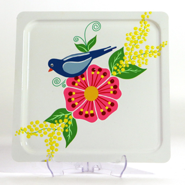 304 paslanamaz çelik üzeri el boyama 20x20 kare tepsi