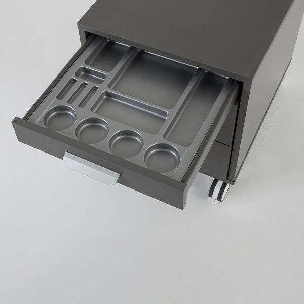tasarlanmış bir ayırıcıyla boya kalemleri, fırçalar ve diğer kırtasiye malzemelerini düzenli bir şekilde saklayabilirsiniz. Kilitli çekmece seçeneği, özel eşyalarınızı güvende tutmanızı sağlar. Pratik tekerlekli tasarımı sayesinde kolayca taşınabilir ve istediğiniz yere konumlandırabilirsiniz. Aynı zamanda arkasında bulunan dikey raf, fonksiyonel bir kullanım sağlar.