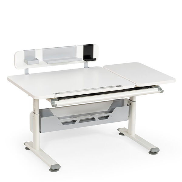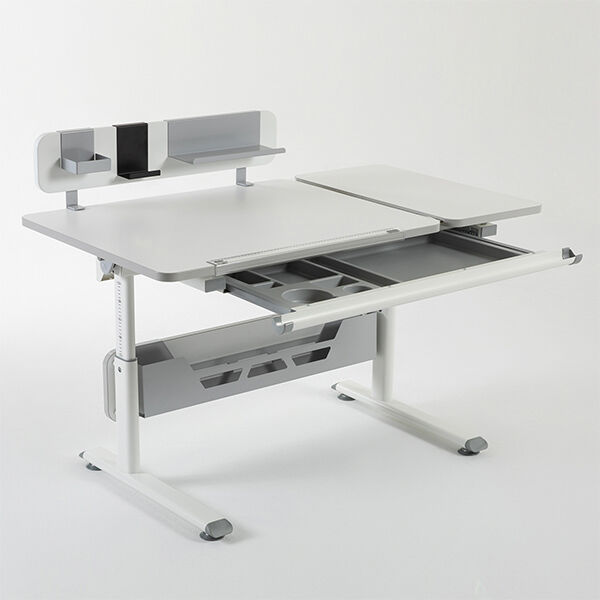 Vega Çalışma Masası, iki bölmeden oluşan benzersiz bir tasarıma sahiptir. Geniş masa üst tablasında 9 kademeli eğim mekanizması bulunurken, sabit dar masa üst tablası da kullanım kolaylığı sunar. Sabit ve hareketli tablalar arasındaki fırça, eşyaların düşmesini engeller. Çevirme kolu ile masa yüksekliği kişisel tercihinize göre ayarlanabilir, böylece çocuğunuzun doğru pozisyonda çalışmasını sağlar. Özel tasarlanmış çekmecesi, kalem, silgi, boya kalemleri gibi malzemeler düzenli saklama olanağı sunar. Ayrıca çekmece önünde bulunan kalem kanalı kullanım kolaylığı sağlar. Masa, farklı opsiyonlarda. Çekmece, fonksiyon panosu ve kablo kanalı gibi özelliklerle kişiselleştirilebilir. Vega çalışma masası, sabit ve değişken malzemelerden oluşan özellikleri ile farklı ihtiyaçlara cevap verir.