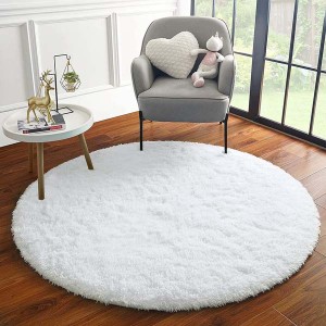 Yuvarlak Tavşan Tüyü Halı Beyaz 12