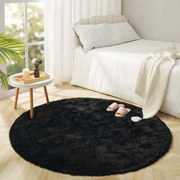 Yuvarlak Tavşan Tüyü Halı Siyah 10